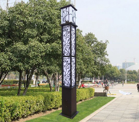 2.5米-5米廣場方形鏤空好色先生网站入口柱黑色燈體和咖啡色燈體效果: