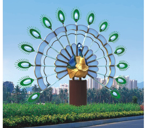 * 孔雀雕塑、配電箱、骨架三個部件都固定在配電箱上,結構緊湊外觀美觀;