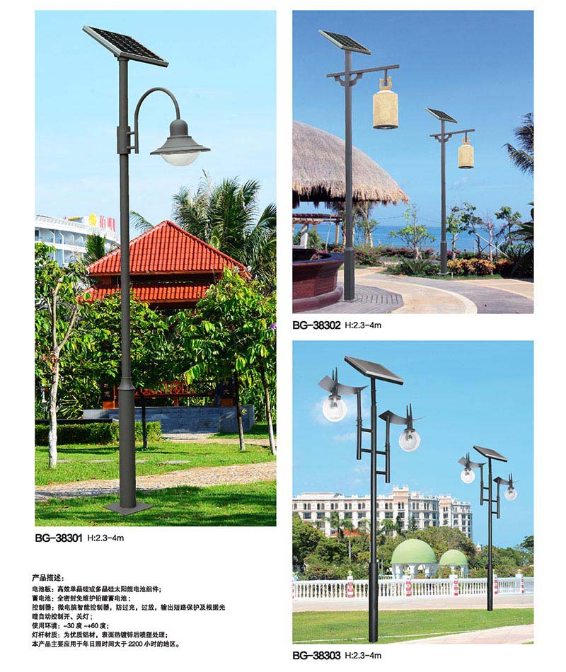 2.3米-4米仿古單頭LED太陽能庭院燈詳細介紹: