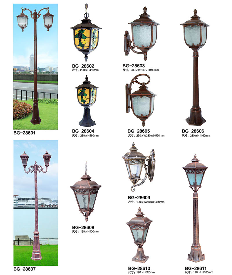 * 庭院燈可根據照明需求自由選擇:單頭庭院燈、雙頭庭院燈