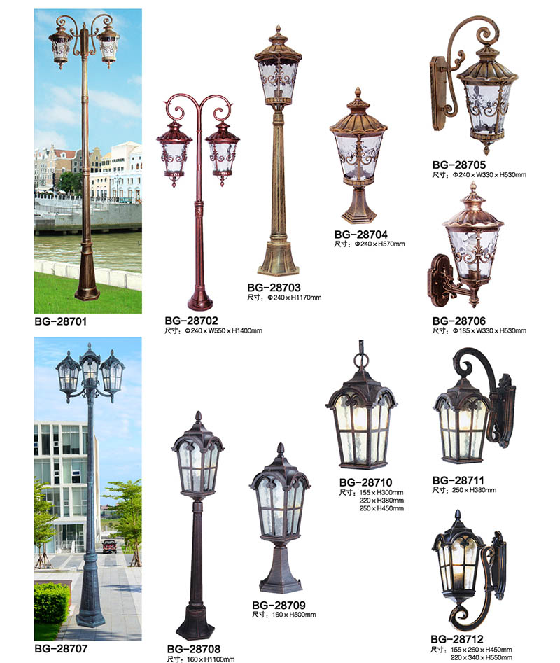 * 壓鑄鋁庭院燈頭可根據不同場合使用: