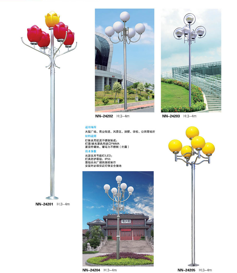 五頭廣場不鏽鋼景觀庭院燈詳細介紹: