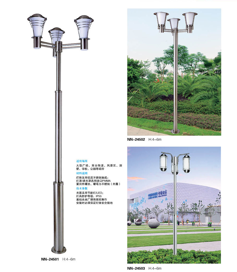 4米-6米三頭不鏽鋼景觀庭院燈圖片展示: