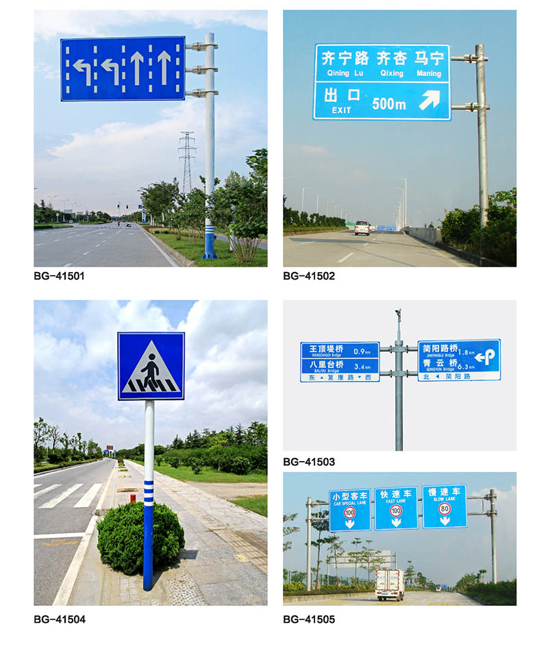 城市主次道路、高速道路、分叉路口、橋梁、機場、碼頭、車站等各類道路標誌指示立杆。